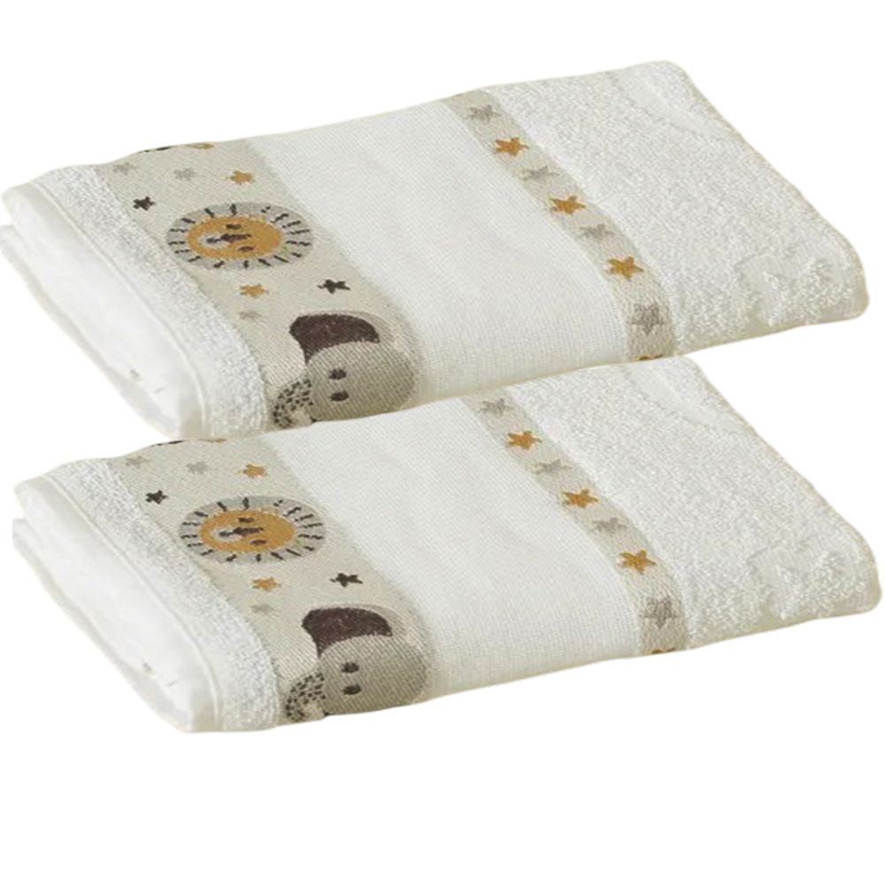 Kit ( 2 ) Toalha de Banho KazzaVip Infantil 100% Algodão Jacquard Barra para Bordar Funny Branco Off-White