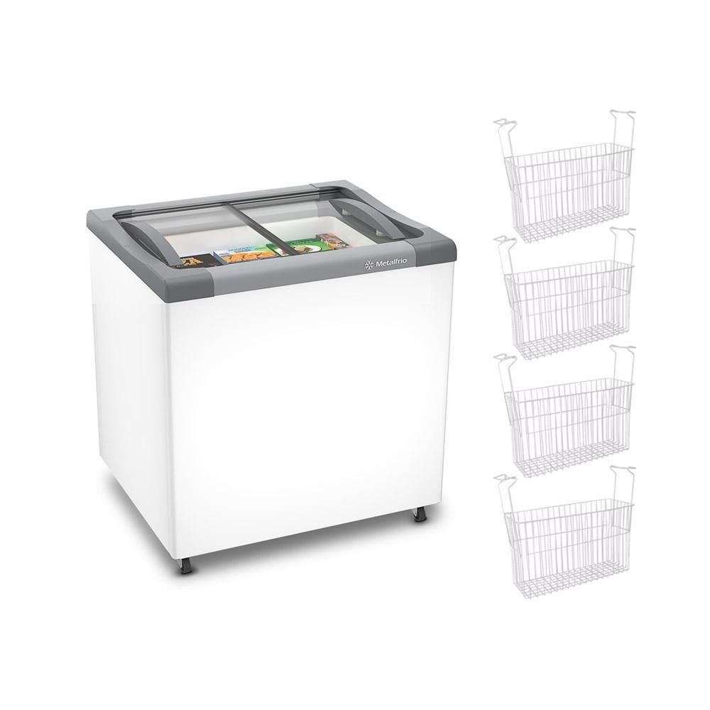 Kit - Freezer Horizontal Tampa De Vidro 144 Litros Nf20 - Metalfrio 127v + 4 Cestos Nextgen Branco 127v