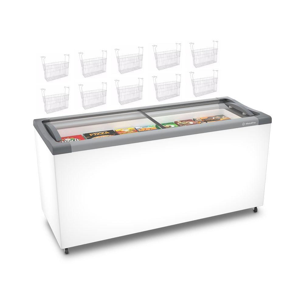 Kit - Freezer Horizontal Tampa De Vidro 404 Litros Nf55 - Metalfrio 220v + 10 Cestos Nextgen Branco 220v