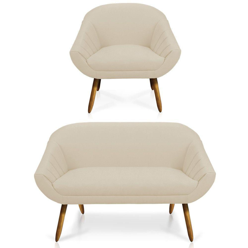 Estrutura:Madeira Eucalipto Espuma:D-23 Tecido:Linho Tipo de pés:Pés Palito Castanho Peso suportado:Até 120 Kg Garantia:90 dias contra defeito de fabricação Montagem:O produto vai montado, apenas rosquear os pés Instruções de limpeza:Utilizar um pano limpo e levemente úmido Você irá receber:02 Volumes com 01 Namoradeira e 01 Poltrona