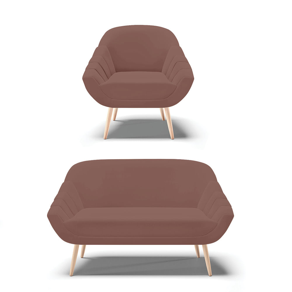 A poltrona Giovana é uma peça indispensável para momentos de descanso depois de um dia longo de trabalho. E não há nada melhor que poder relaxar em um móvel de extremo conforto não é mesmo! Afinal ela dará aquele toque de perfeição ao seu ambiente Ela conta com uma estrutura reforçada em madeira eucalipto que oferece alta resistência e qualidade ao móvel. Produzida com Pés Palito Natural que suporta até 120kg, seu estofamento é com espuma de densidade D-23. A namoradeira 02 Lugares traz consigo um toque de delicadeza por conta do formato arredondado de seu encosto, garantindo além de muito conforto uma personalidade única para seu ambiente. Produzida em madeira reflorestada de eucalipto, estofada em Espuma D-23, os pés são em madeira garantindo uma maior resistência ao produto. Sua durabilidade e conforto é seu diferencial. Adquira já seu Kit 01 Namoradeira 02 Lugares e 01 Poltrona no tecido Veludo no tom Rosê. Dimensões da Poltrona Altura total: 86 cm Largura total: 79 cm Profundidade total: 70 cm Altura do encosto: 44 cm Largura do assento: 50 cm Profundidade do assento: 52 cm Altura do chão ao assento: 45 cm Espessura do assento: 17 cm Altura do chão ao braço: 50 cm Altura interna do braço: 15 cm Tamanho dos pés: 30 cm Espessura do braço: 9 cm Peso: 14 kg Dimensões da Namoradeira Altura total: 85 cm Largura total: 132 cm Profundidade total: 70 cm Altura do encosto: 45 cm Largura do assento: 105 cm Profundidade do assento: 17 cm Altura do chão ao assento: 45 cm Espessura do assento: 17 cm Altura do chão ao braço: 50 cm Altura interna do braço: 15 cm Tamanho dos pés: 30 cm Espessura do braço: 9 cm Peso: 20 kg Especificações do Produto Estrutura: Madeira Eucalipto Espuma: D-23 Tecido: Veludo Tipo de pés: Pés Palito Natural Peso suportado: Até 120 Kg Garantia: 90 dias contra defeito de fabricação Montagem: O produto vai montado, apenas rosquear os pés Instruções de limpeza: Utilizar um pano limpo e levemente úmido Você irá receber: 02 Volumes com 01 Namoradeira e 01 Poltrona Observações Relevantes - Todos os produtos vão embalados com total segurança; - As cores dos produtos podem sofrer alterações dependendo do seu monitor; - Para futuras compras, não garantimos a mesma tonalidade de cor, pois existe variação a cada lote do fabricante do tecido; - As imagens são meramente ilustrativas, não acompanham objetos de decoração e eletros; - Confira as dimensões do produto no momento da compra e certifique-se de que passará normalmente por escadas, elevadores, portas e corredores; - Importante: Por se tratar de estofado as medidas podem ter uma pequena variação em até 3 cm; - Não nos responsabilizamos no ato da entrega por montagens, desmontagens, instalações de produtos; - Não nos responsabilizamos no ato da entrega por subir escadas, elevadores, nem utilização de guinchos ou equipamentos similares para acesso a pisos superiores em apartamentos; - A entrega do produto é realizada em todo território nacional, até onde as rodovias alcançam, entregas fluviais ou aéreas devem ser cotadas a parte; - Observando as orientações acima, evita-se futuros desagrados ou imprevistos com a entrega do produto. Havendo despesas adicionais, serão de responsabilidade do cliente;