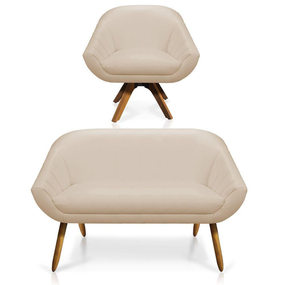 Kit 01 Namoradeira 02 Lugares E 01 Poltrona Giratória Giovana Corino Base Madeira Mm30 - D'rossi Cor Bege
