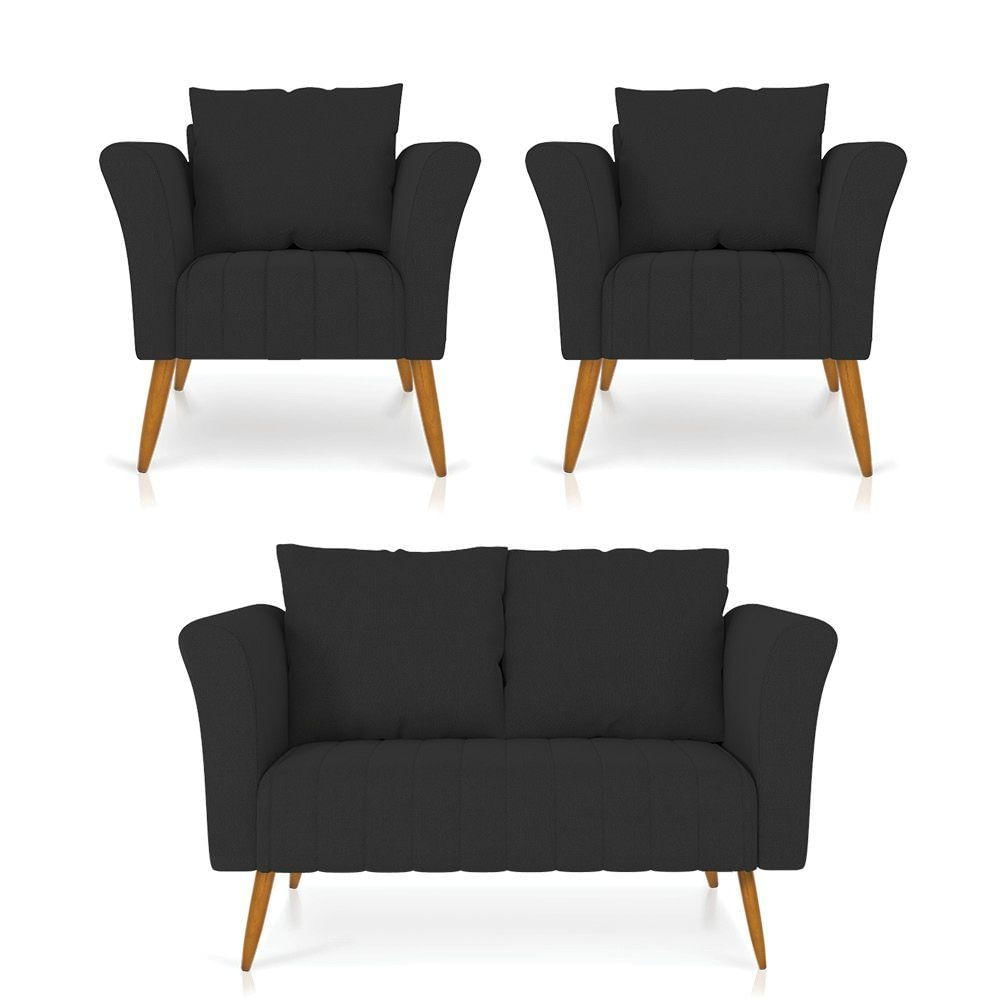 Kit 01 Namoradeira 02 Lugares E 02 Poltronas Marilia Linho Pés Palito Castanho - D'rossi Cor A79 Preto