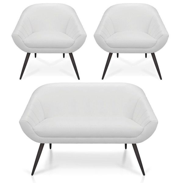 Kit 01 Namoradeira 02 Lugares E 02 Poltronas Giovana Corino Pés Palito De Ferro Branco