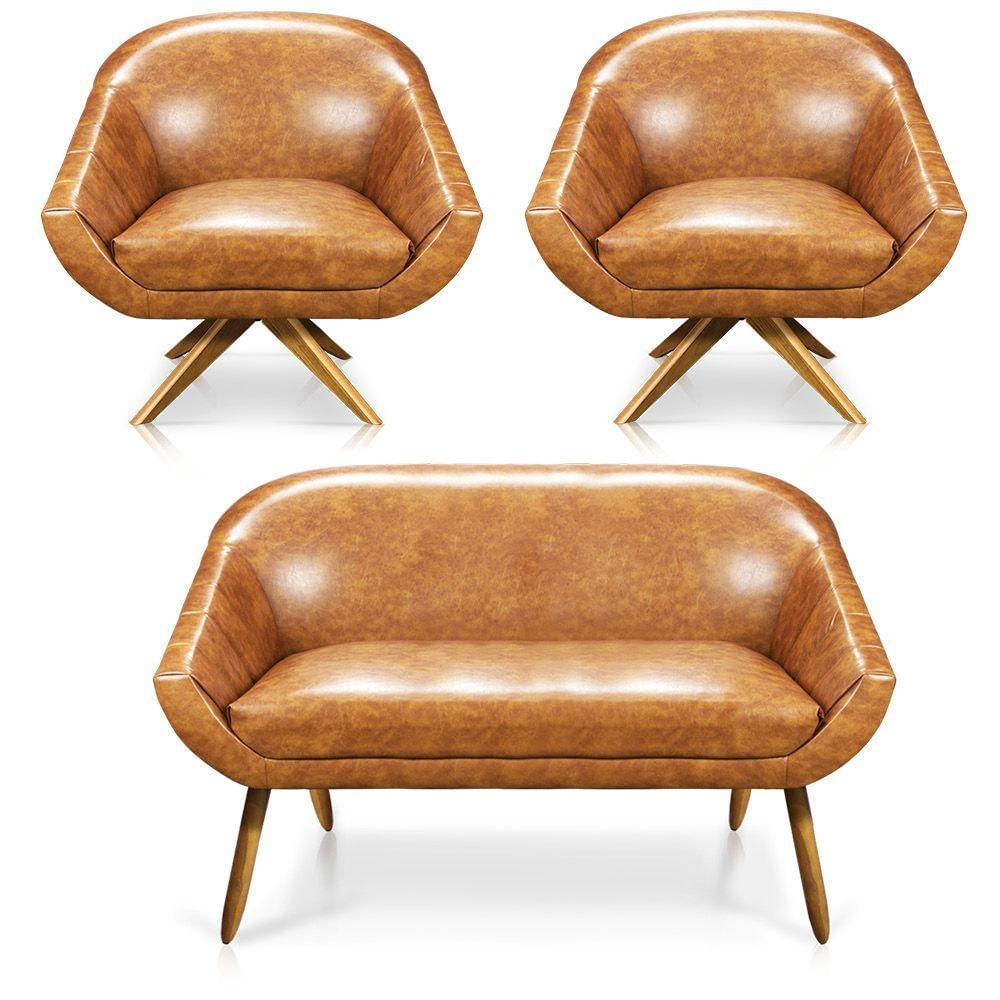 Kit 01 Namoradeira 02 Lugares E 02 Poltronas Giratória Giovana Corano Nozes
