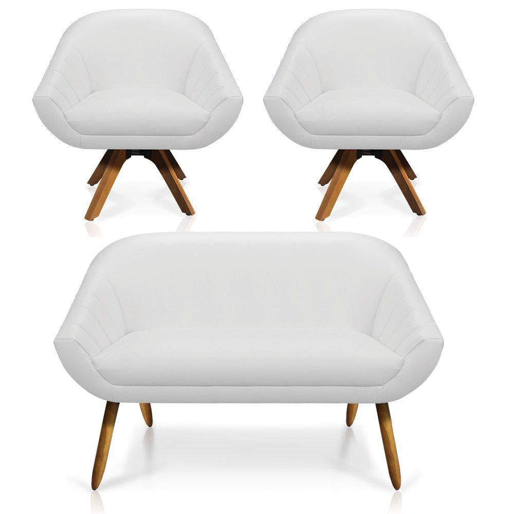 Kit 01 Namoradeira 02 Lugares E 02 Poltronas Giratória Giovana Corino Base Madeira Mm30 - D'rossi Cor Branco