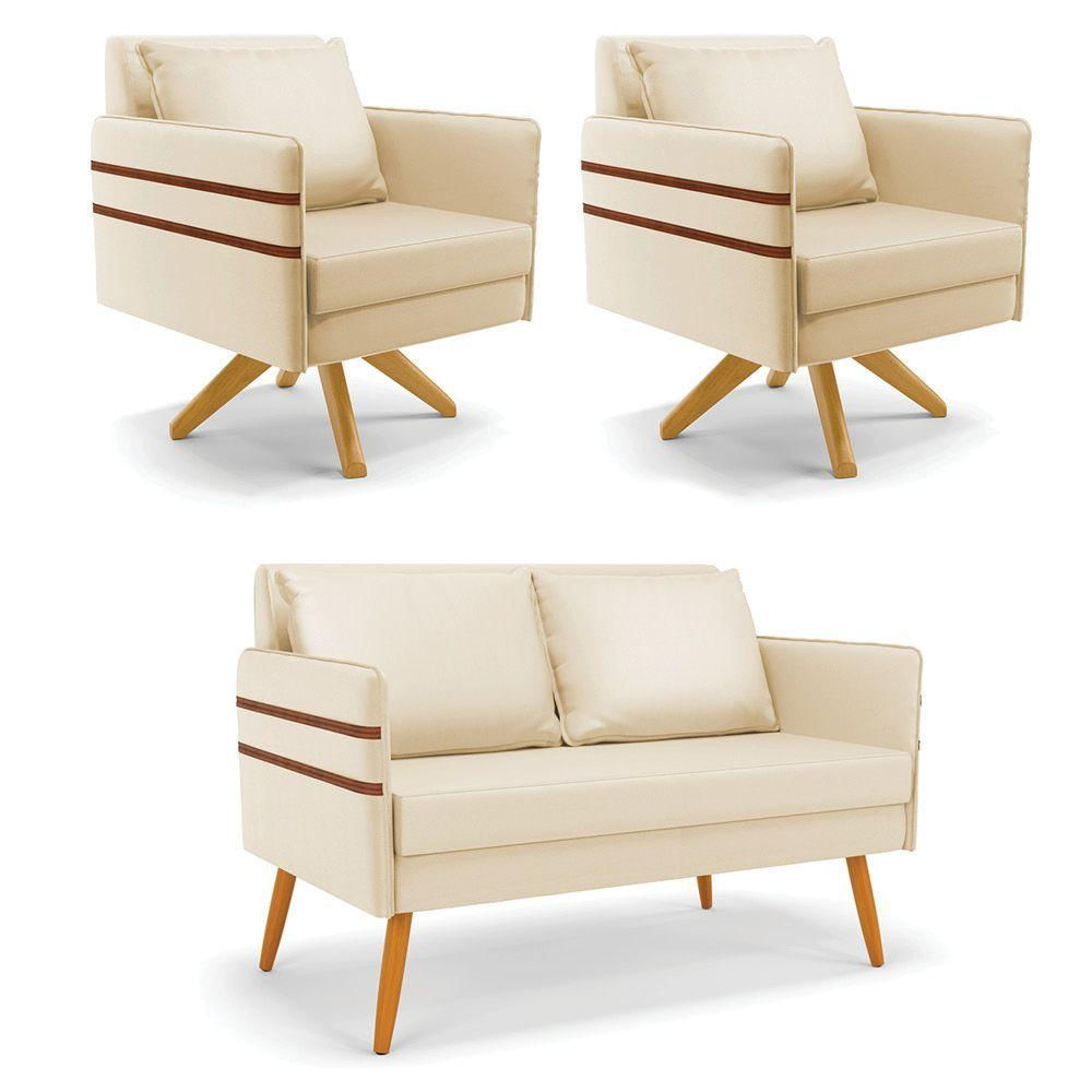 Kit 01 Namoradeira 02 Lugares E 02 Poltronas Mari Corino Base De Madeira Ma30 - D'rossi Cor Bege