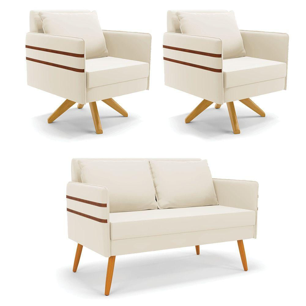 Kit 01 Namoradeira 02 Lugares E 02 Poltronas Mari Veludo Bege Base De Madeira Ma30 - D'rossi