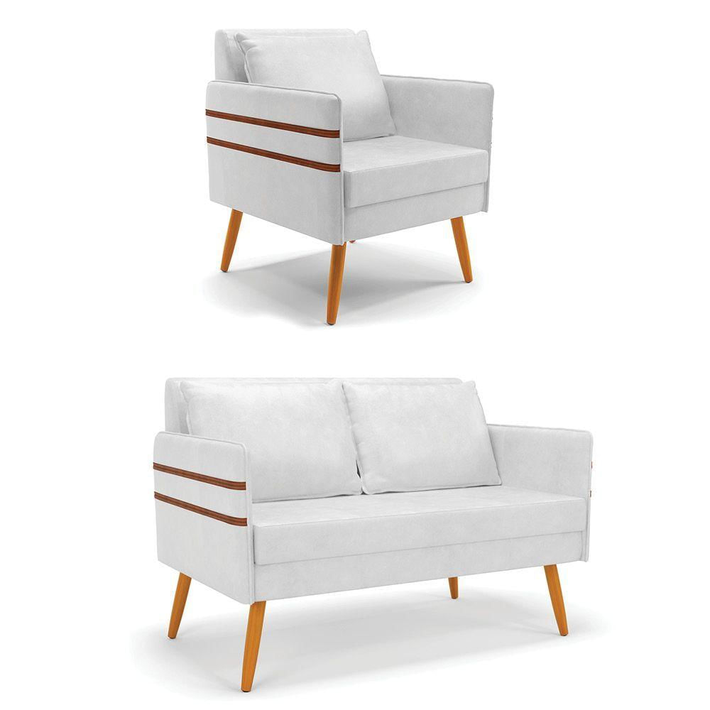 Kit 01 Namoradeira 02 Lugares E 01 Poltrona Mari Corano Pés Palito Castanho - D'rossi Cor Branco
