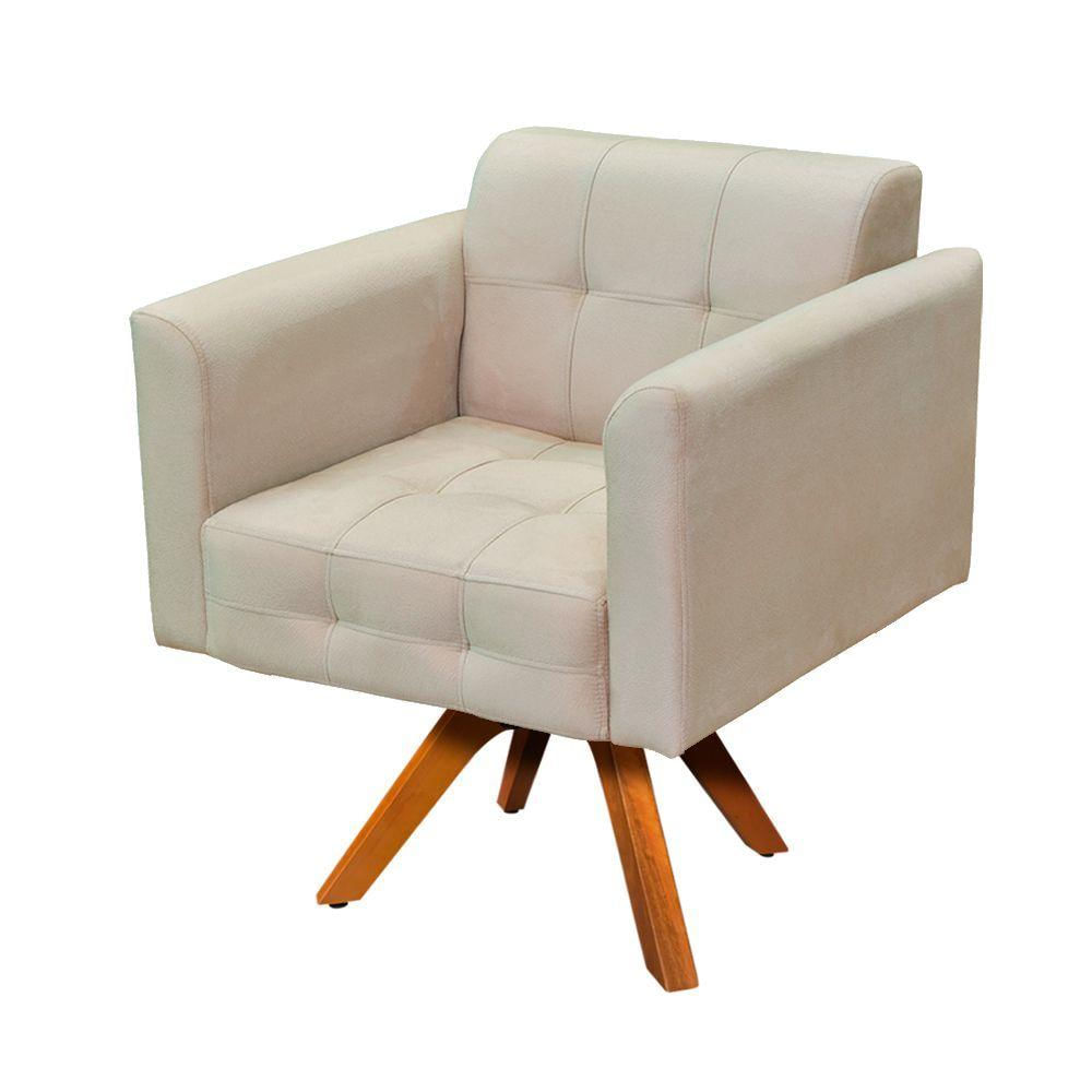 Kit 01 Namoradeira E 02 Poltronas Giratória Elisa Suede Base Madeira Mm30 D´rossi -bege