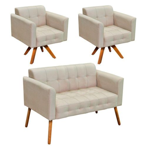 Kit 01 Namoradeira E 02 Poltronas Elisa Suede Bege