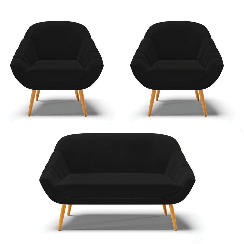 Kit 01 Namoradeira 02 Lugares E 02 Poltronas Giovana Linho Pés Palito Castanho - D'rossi Cor A79 Preto