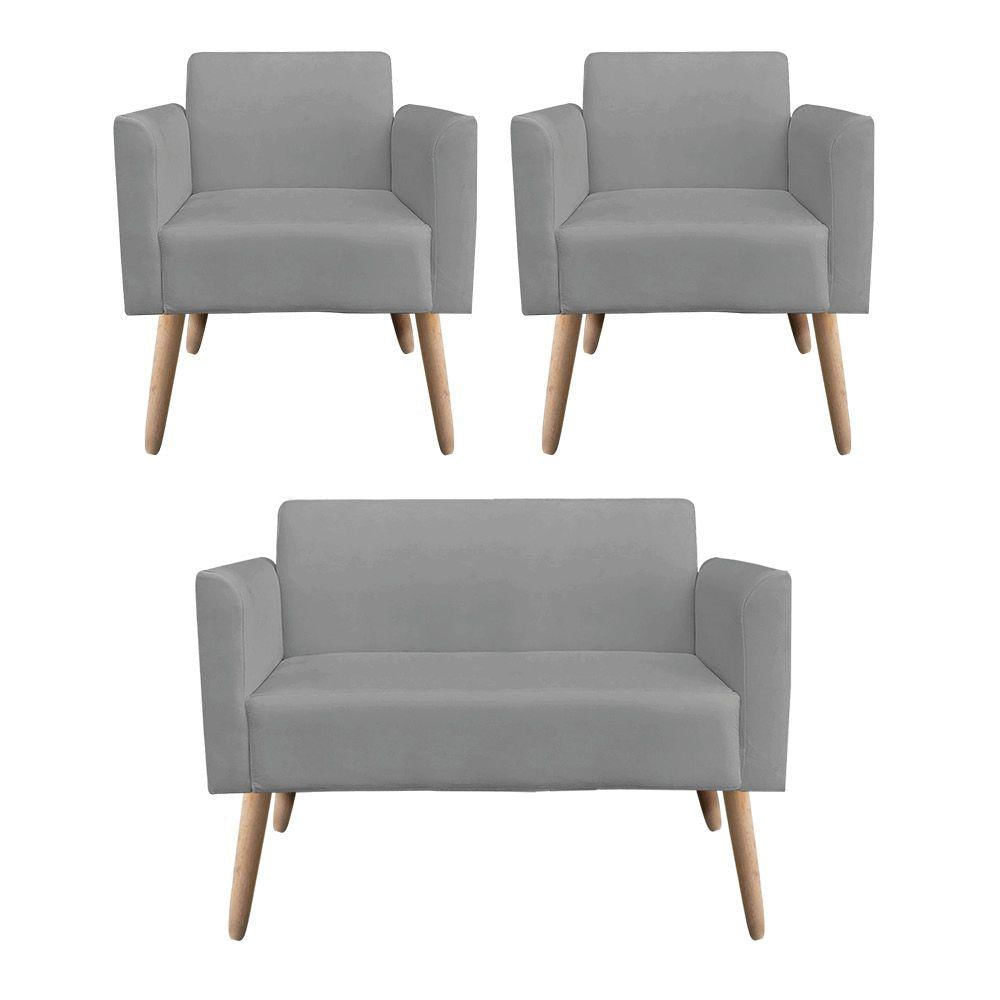 Do nosso grande sucesso a Elisa, apresentamos para você o Kit 01 Namoradeira e 02 Poltronas Marisa, que vai encher seu ambiente de cor e modernidade! Seu design feito com linhas retas proporciona conforto ao sentar-se sem falar em seus detalhes no assento e no encosto, um luxo! Sua estrutura robusta é confeccionada em madeira de eucalipto proveniente de reflorestamento, o estofamento do assento é composto de espuma prorelax D-23 no encosto e revestido em tecido suede, sua sustentação é dada através dos Pés Palito, suportando em média até 240 Kg a Namoradeira e 120 Kg a Poltrona. Dimensões da Namoradeira Altura: 76 cm Largura: 113 cm Profundidade: 64 cm Altura dos chão até o assento: 44 cm Altura do encosto: 35 cm Largura do assento: 95 cm Profundidade do assento: 46 cm Peso: 20 KG Dimensões da Poltrona Altura total: 83 cm Largura total: 63 cm Profundidade total: 63 cm Altura do encosto: 35 cm Largura do assento: 47 cm Profundidade do assento: 47 cm Altura do chão ao assento: 48 cm Espessura do assento: 18 cm Altura do chão ao braço: 68 cm Altura interna do braço: 20 cm Espessura do braço: 8 cm Peso: 13 kg Especificações do Produto Estrutura: Madeira Eucalipto Espuma: Prorelax D-23 Tecido: Suede (100% Poliéster) Tipo de pés: Pés Palito Natural Peso Suportado: Até 240 Kg Garantia: 90 dias contra defeito de fabricação Montagem: O produto vai montado Instruções de Limpeza: Utilizar um pano limpo e levemente úmido Você irá receber: 03 volumes Observações Relevantes - Todos os produtos vão embalados com total segurança; - As cores dos produtos podem sofrer alterações dependendo do seu monitor; - Para futuras compras, não garantimos a mesma tonalidade de cor, pois existe variação a cada lote do fabricante do tecido; - As imagens são meramente ilustrativas, não acompanham objetos de decoração e eletros; - Confira as dimensões do produto no momento da compra e certifique-se de que passará normalmente por escadas, elevadores, portas e corredores; - Importante: Por se tratar de estofado as medidas podem ter uma pequena variação em até 3 cm; - Não nos responsabilizamos no ato da entrega por montagens, desmontagens, instalações de produtos; - Não nos responsabilizamos no ato da entrega por subir escadas, elevadores, nem utilização de guinchos ou equipamentos similares para acesso a pisos superiores em apartamentos; - Observando as orientações acima, evita-se futuros desagrados ou imprevistos com a entrega do produto. Havendo despesas adicionais, serão de responsabilidade do cliente; Informações Técnicas