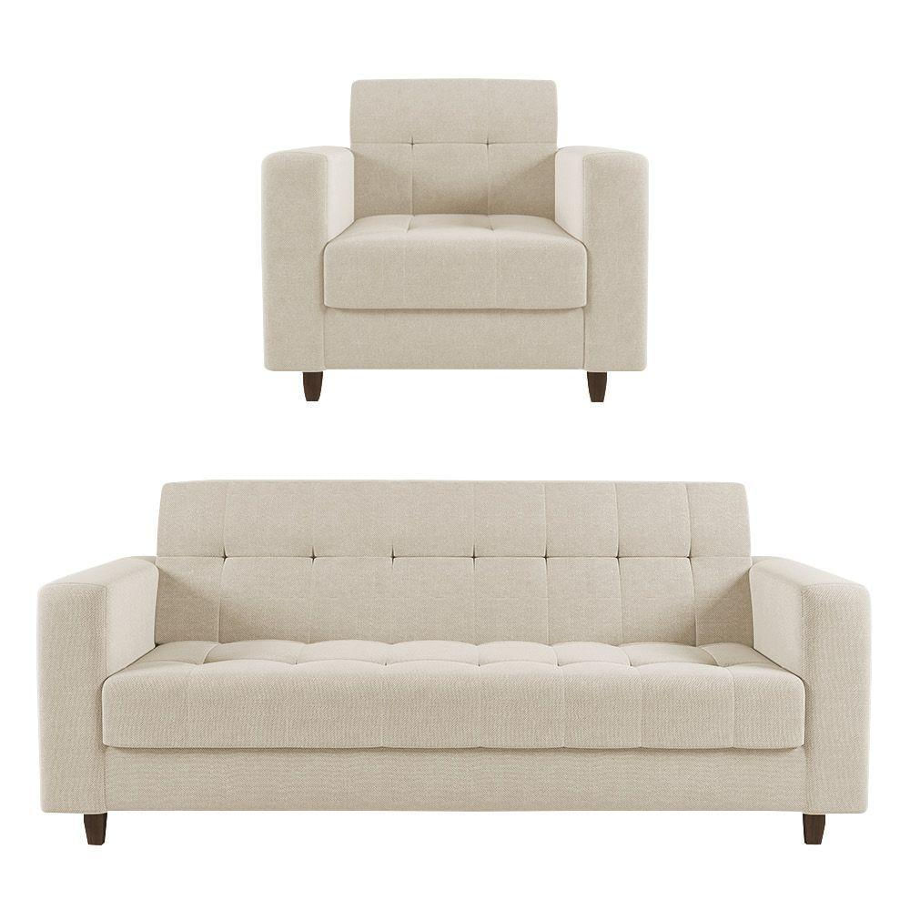 Estrutura: Madeira Eucalipto Espuma: D-23 Tecido: Linho Tipo de pés: Pés Chanfrado Tabaco Peso suportado: Até 120 Kg Garantia: 90 dias contra defeito de fabricação : O produto vai montado, apenas rosquear os pés Instruções de limpeza: Utilizar um pano limpo e levemente úmido Você irá receber: 02 Volumes com 01 Sofá e 01 Poltrona