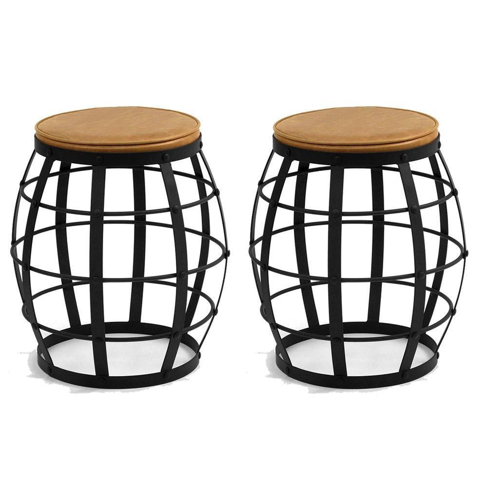 Kit 02 Bancos Decorativos Seat Garden Estofado Flora Preto Couro Marrom Claro Gran Belo