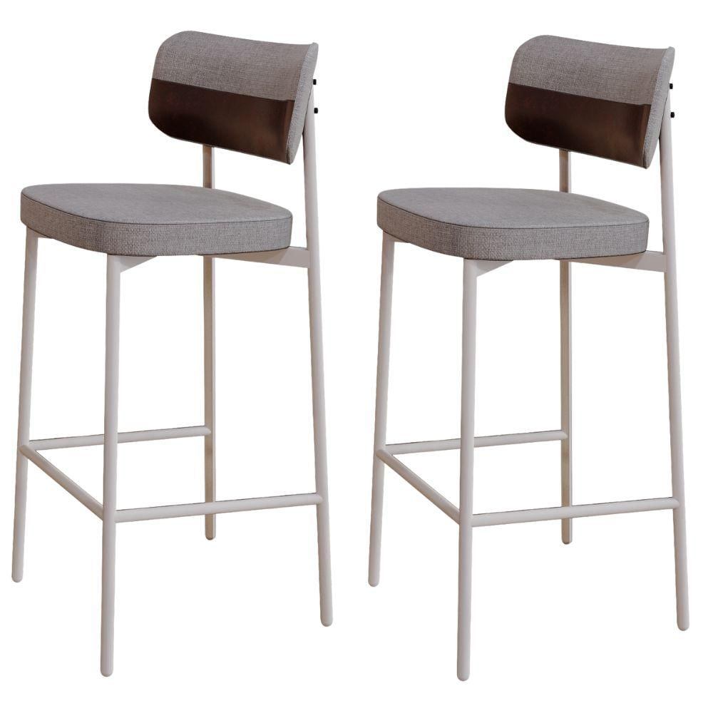 Kit 02 Banquetas Alta Bar Cozinha Sala De Jantar Aço Branco Kaira C01 Linho Cinza Courino Café - Lyam Decor
