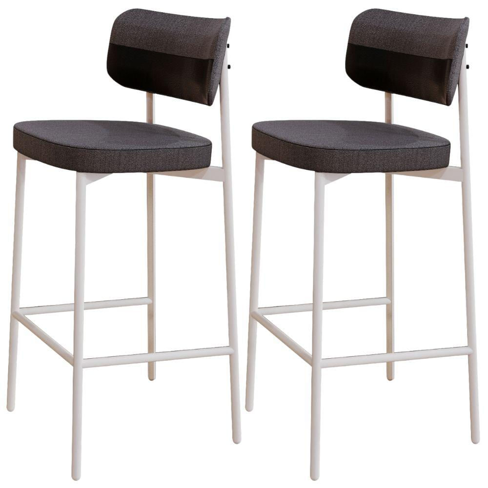 Kit 02 Banquetas Alta Bar Cozinha Sala De Jantar Aço Branco Kaira C01 Linho Preto Courino Preto - Lyam Decor