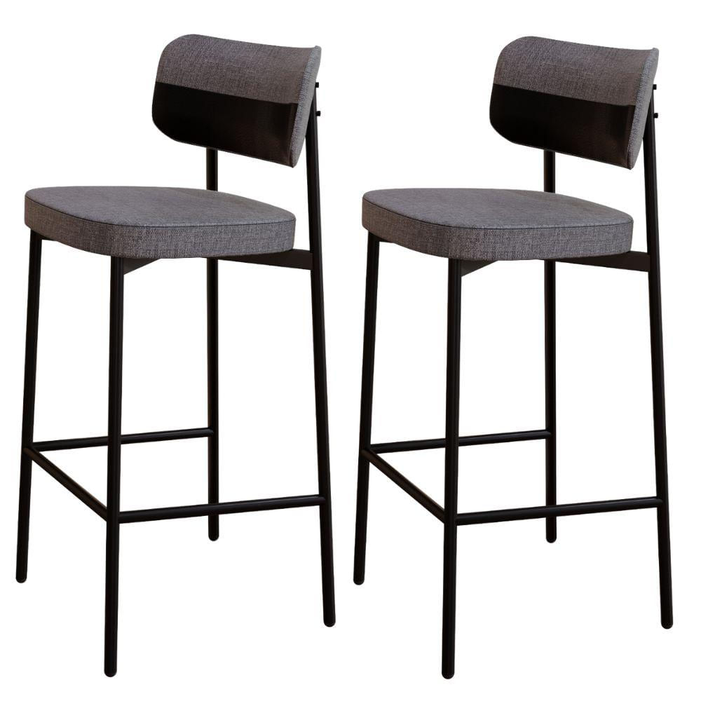 Kit 02 Banquetas Alta Bar Cozinha Sala De Jantar Aço Preto Kaira C01 Linho Cinza Courino Preto - Lyam Decor