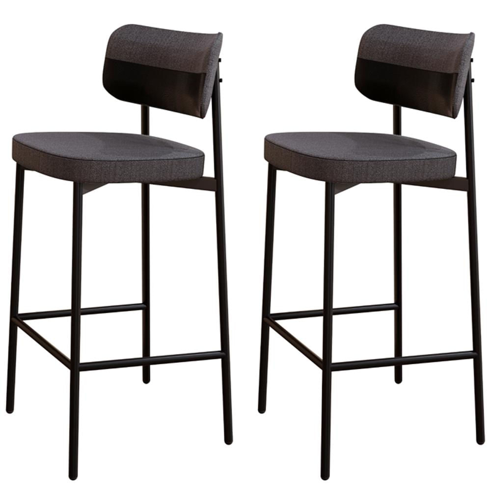 Kit 02 Banquetas Alta Bar Cozinha Sala De Jantar Aço Preto Kaira C01 Linho Preto Courino Preto - Lyam Decor