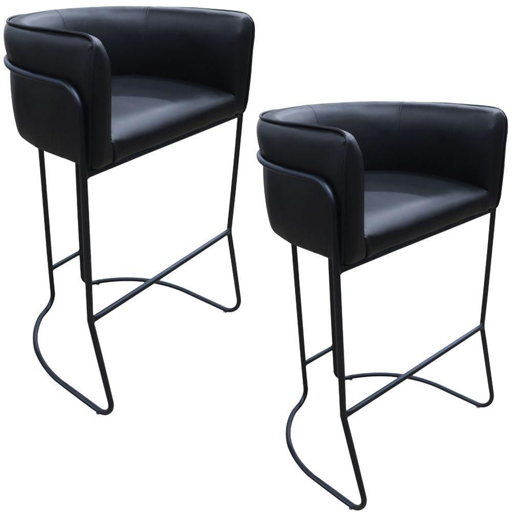 Kit 02 Banquetas Alta Com Encosto Betina Base Preto Fosco Corano Preto - Nexta Casa