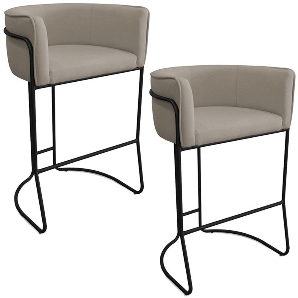 Kit 02 Banquetas Alta Com Encosto Betina Base Preto Poliéster Bege Escuro - Nexta Casa