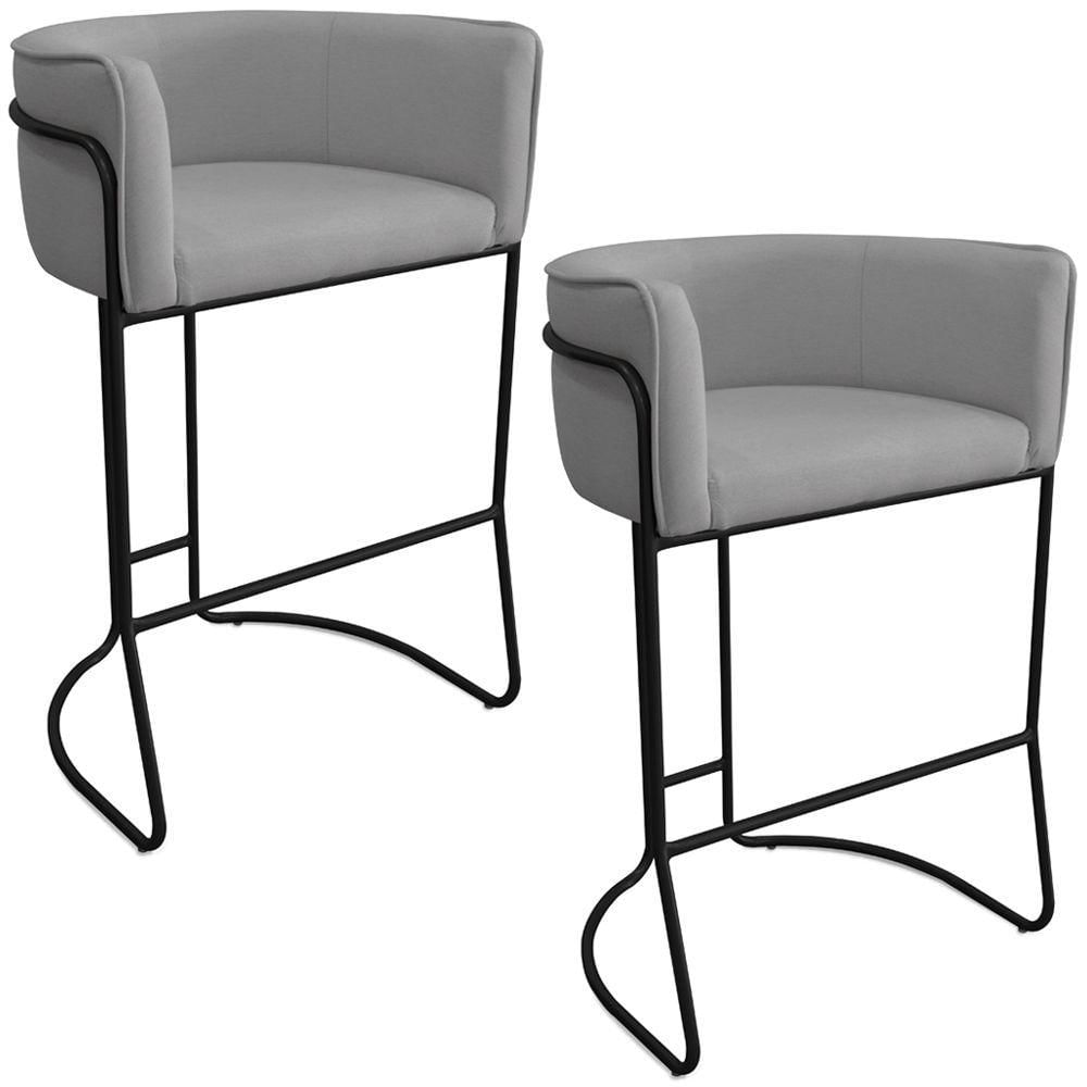 Kit 02 Banquetas Alta Com Encosto Betina Base Preto Poliéster Cinza - Nexta Casa