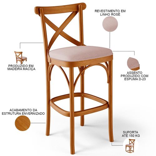 As banquetas têm ocupado um papel de destaque na decoração qualquer ambiente, pensando nisso a Banqueta Ávila chega trazendo um design moderno, confortável e prático. Seu assento estofado traz charme e entrega o conforto ideal a você e sua família. Quando o assunto é versatilidade, ela se propõe a agradar todos os estilos e se encaixar em bares, áreas gourmet, bancadas, cozinhas, salas de jantar e estar e até restaurantes. Sua estrutura em madeira maciça, garante segurança e ainda adiciona toques de elegância e harmonia ao seu espaço. Garanta estilo ao seu ambiente e adquira já a sua!! Dimensões do produto (L x A x P) 50 x 103 x 56 cm Medidas Internas: Altura do encosto: 30 cm Altura do chão ao assento: 77 cm Largura do assento: 44 cm Profundidade do assento: 43 cm Largura total do encosto: 50 cm Altura do chão ao apoio de pés: 29,5 cm Largura do encosto: 36,5 cm Características: Estrutura em Madeira Maciça, com acabamento envernizado. Revestimento em Linho na cor Rosê, de alta qualidade. Assento estofado com espuma D-23. Suporta até 150 kg. - Produto entregue montado. - Por se tratar de estofado as medidas podem ter uma pequena variação de até 3 cm. - A tonalidade do produto real poderá ter ligeira variação devido o lote de tecidos. - A limpeza deve ser feita com pano umedecido em água limpa, sem esfregar, não utilizar produtos abrasivos, desengordurantes, álcool ou solvente. Observações importantes: - Produto para uso residencial em ambiente interno, não devendo ficar exposto diretamente ao sol, calor e umidade excessivos. - Pode haver alguma diferença de tonalidade entre a imagem e o produto real, por conta do tratamento de imagens e a calibração de cores do seu monitor. - As imagens são meramente ilustrativas, não acompanham objetos de decoração e eletrônicos. - Ao receber a mercadoria, o cliente deve verificar as condições da embalagem, caso haja alguma avaria não assine o comprovante de recebimento. - Montagem, desmontagem e outras instalações serão de responsabilidade do cliente. Não nos responsabilizamos, no ato da entrega, por subir escadas/elevadores ou pelo transporte por guincho em apartamentos. Eventuais despesas são de responsabilidade do comprador. - Confira as dimensões do produto e certifique-se de que passará normalmente por supostos elevadores, portas, escadas e/ou corredores de sua residência.