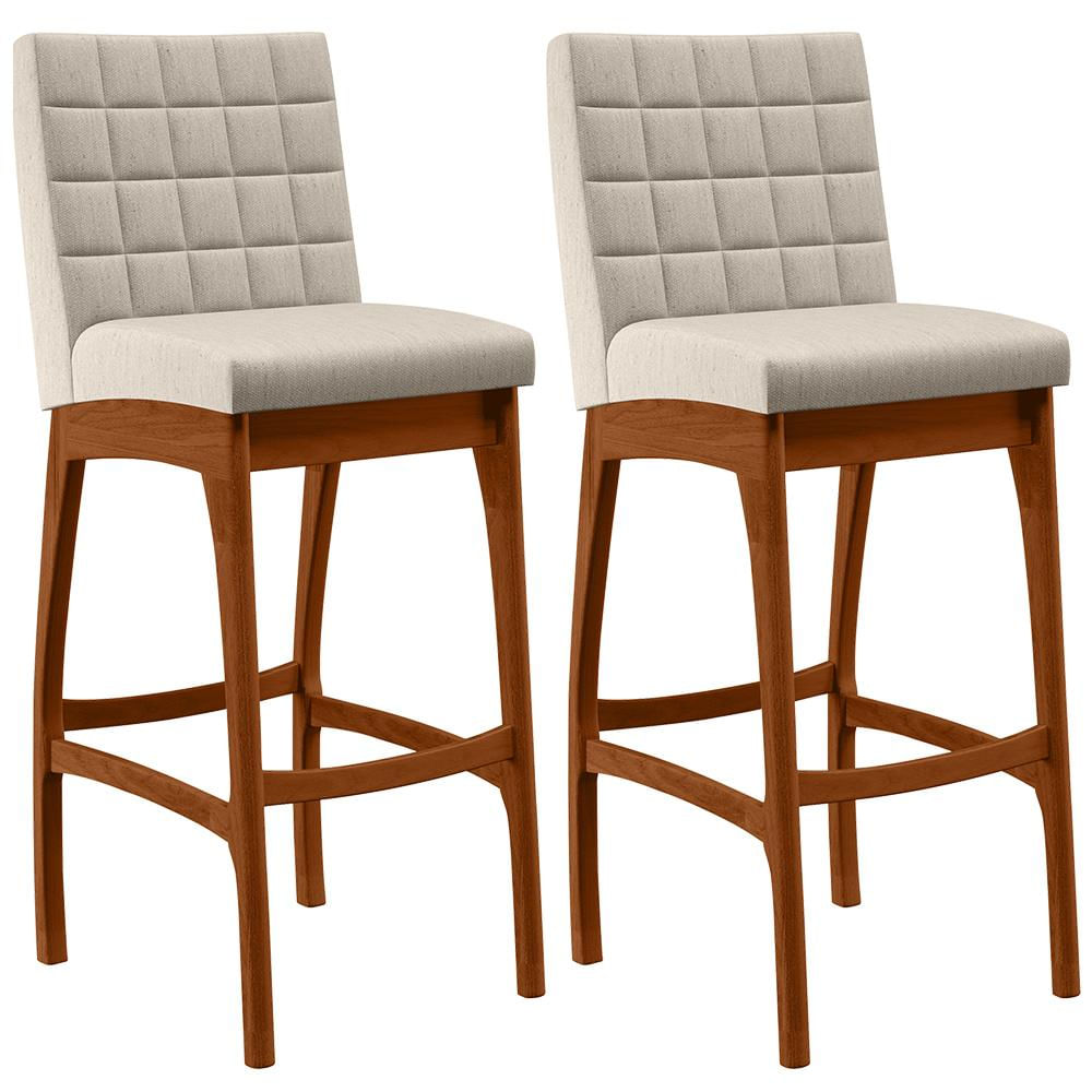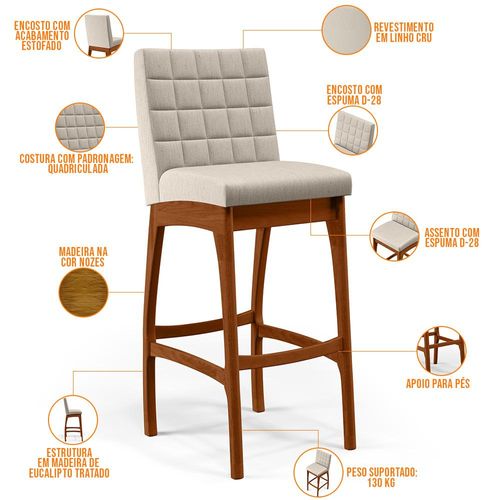 Kit 02 Banquetas Altas Para Cozinha Sala de Jantar Fixa Mila B04 Linho Cru - Lyam Decor