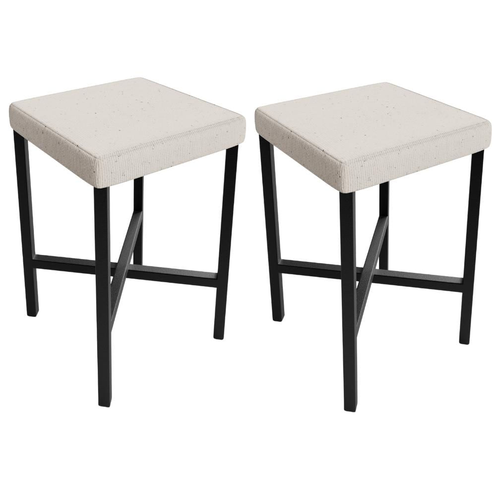 Kit 02 Banquetas Baixa Bar Cozinha Sala De Jantar Preto Stella L02 Linho Cru - Lyam Decor