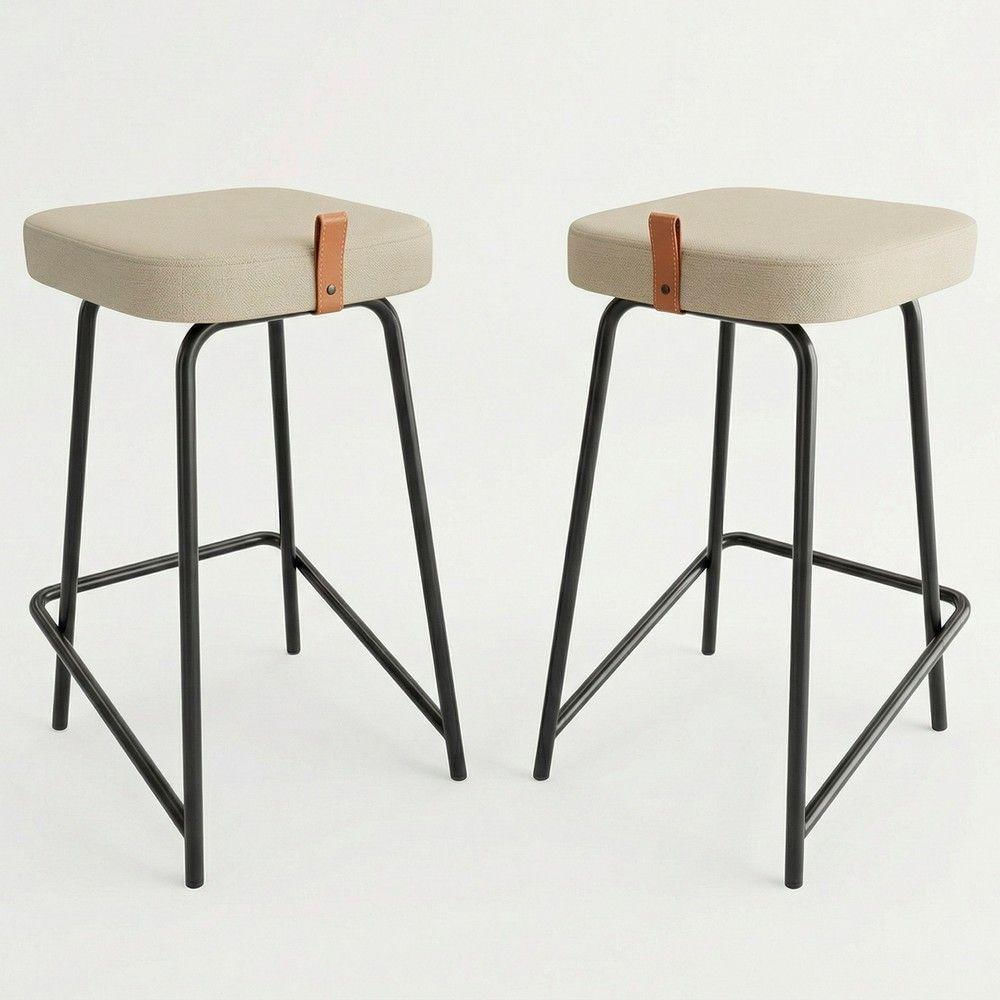 Kit 02 Banquetas Médias Para Cozinha Vik Estofada Linho Bege - Desk Design