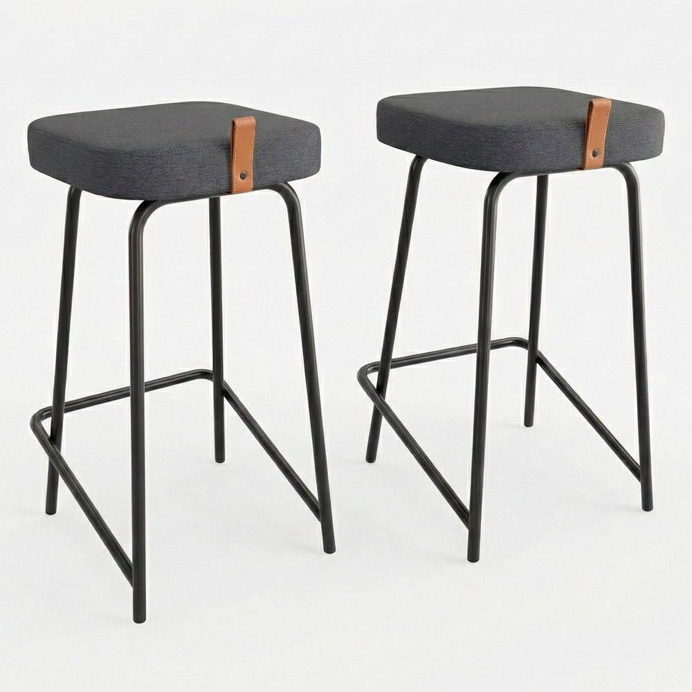 Kit 02 Banquetas Médias Para Cozinha Vik Estofada Linho Grafite - Desk Design