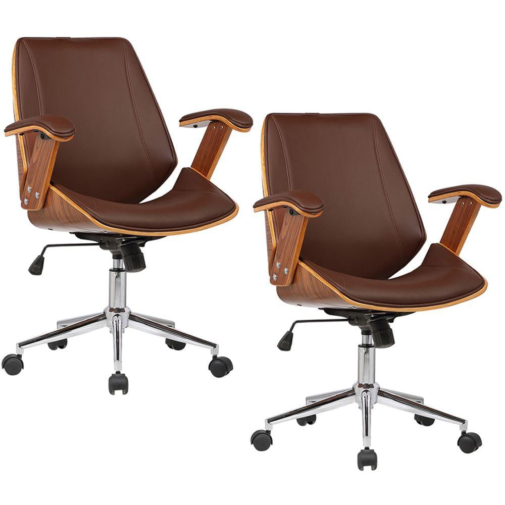 Kit 02 Cadeiras de Escritório Diretor Giratória com Regulagem de Altura Akon PU Marrom - Gran Belo
