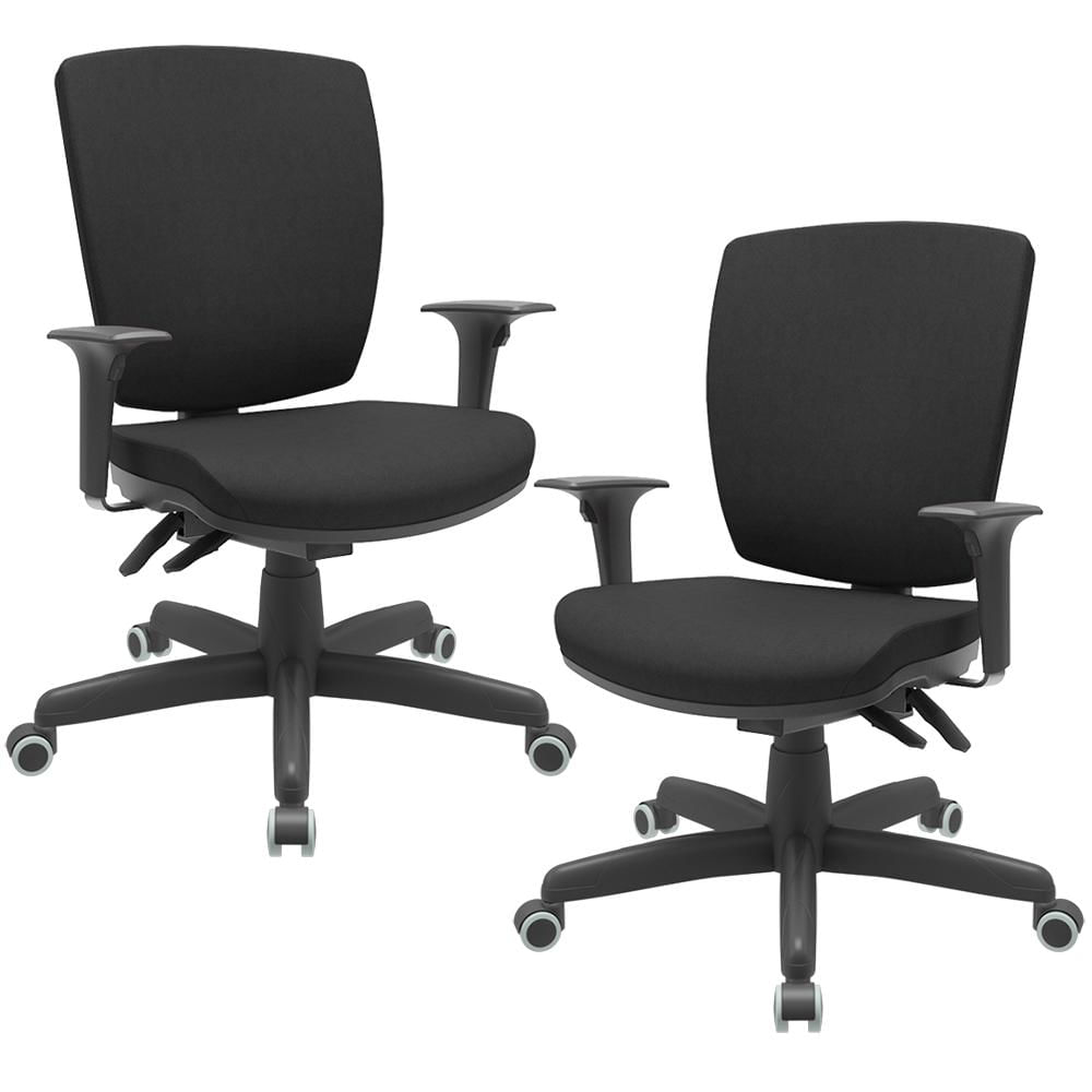 Kit 02 Cadeiras de Escritório Diretor Office Giratória Preto Alta Flexi P03 Poliéster Preto - Lyam