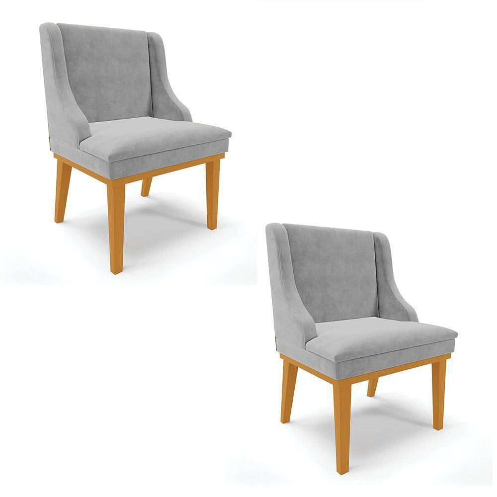 Kit 02 Cadeiras De Jantar Liz Suede Base Fixa Madeira Castanho - D'rossi Cor Cinza