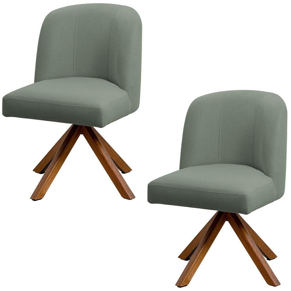 Kit 02 Cadeiras De Jantar Cléo Base Giromad Linho Verde - Nexta Casa