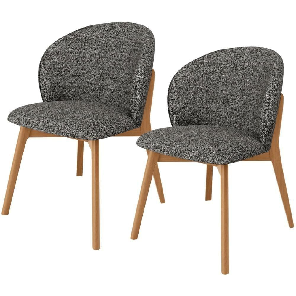 Kit 02 Cadeiras De Jantar E Estar Living Estofada Mia L02 Linho Mescla Chumbo - Lyam Decor