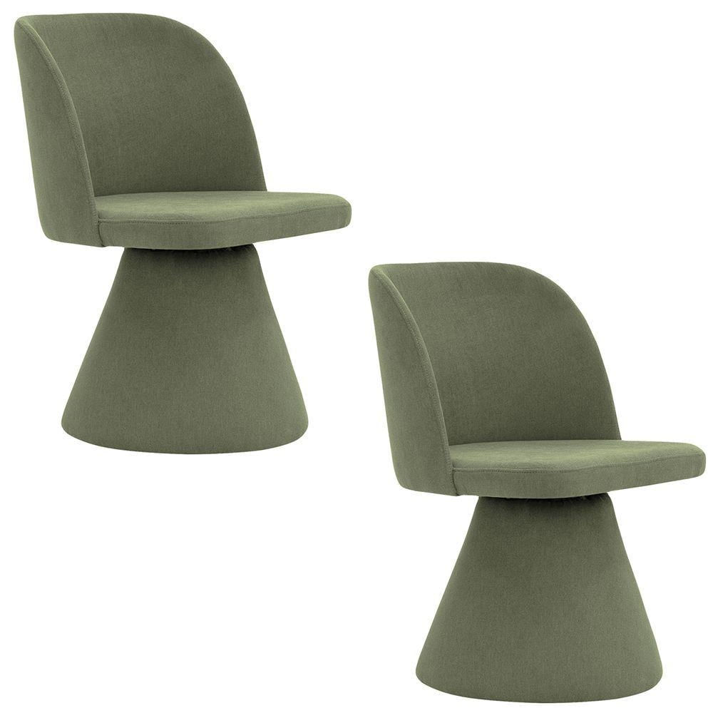 Kit 02 Cadeiras De Jantar Liz Base Fixa Linho Verde - Nexta Casa