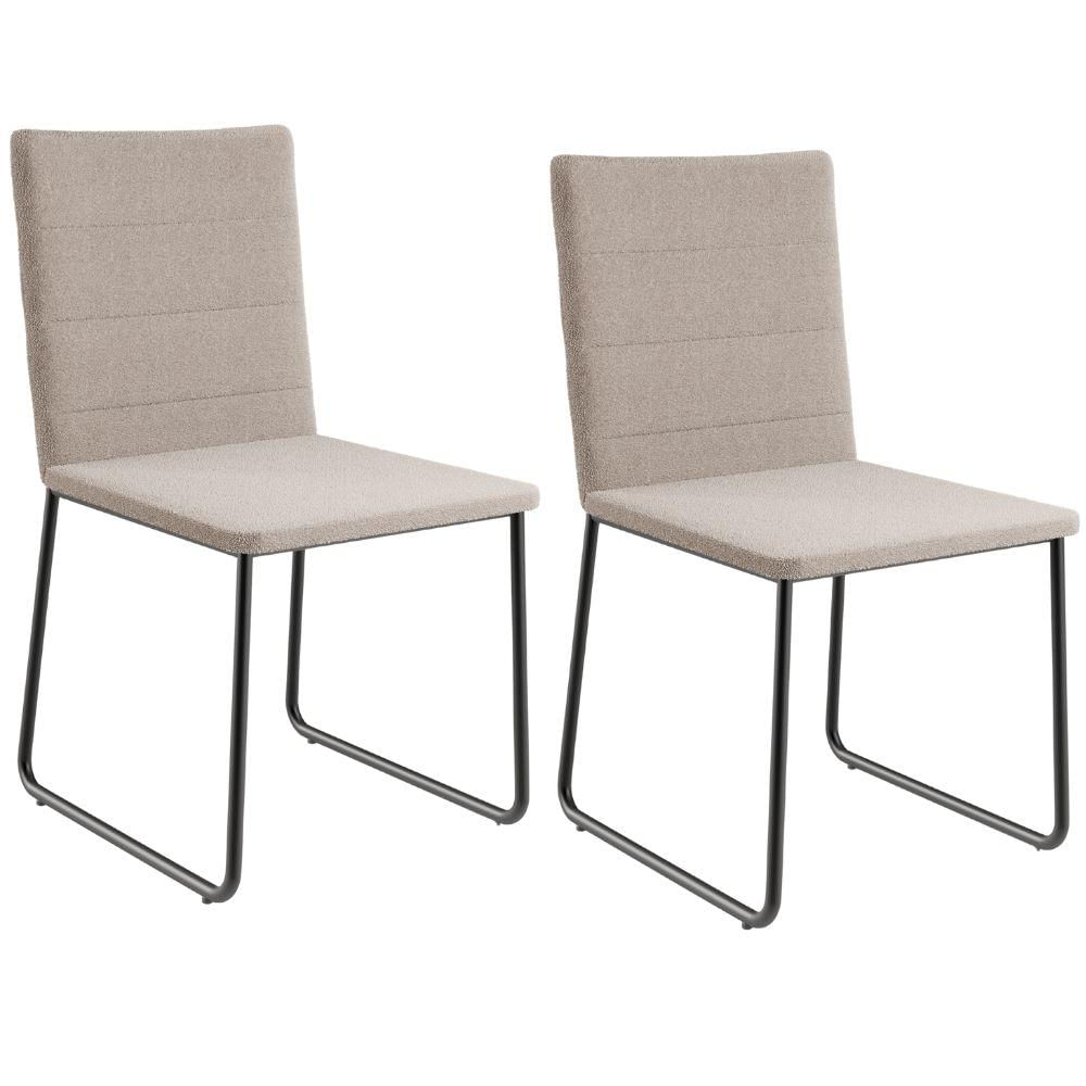 Kit 02 Cadeiras Decorativa Estofada Para Sala De Jantar Preto Maya L02 Bouclê Creme - Lyam Decor