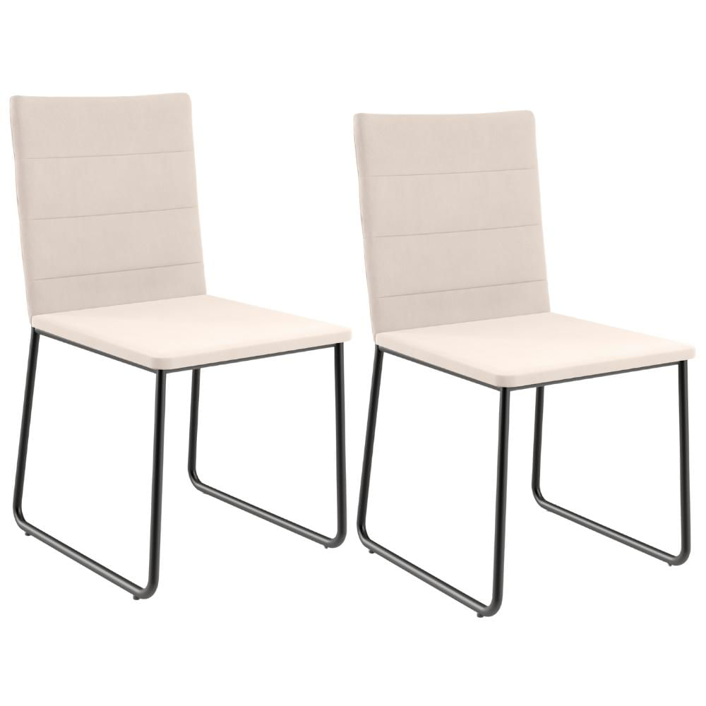 Kit 02 Cadeiras Decorativa Estofada Para Sala De Jantar Preto Maya L02 Suede Bege - Lyam Decor