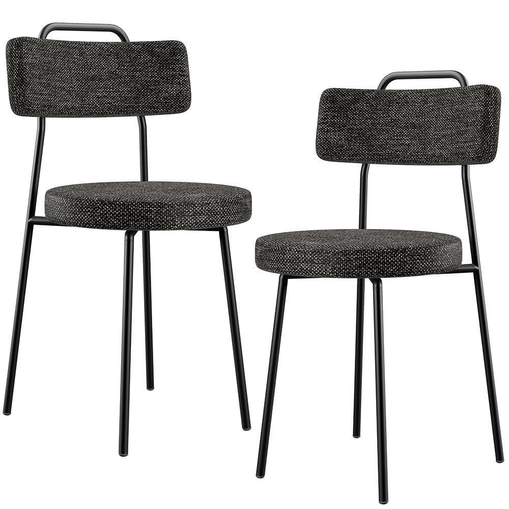 Kit 02 Cadeiras Decorativas Estofada Para Sala De Jantar Barcelona F01 Linho Chumbo - Lyam Decor