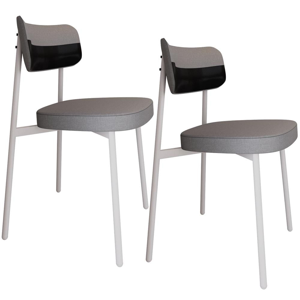 Kit 02 Cadeiras Estofada Para Sala de Jantar Astrid Branco C01 Linho Cinza Courino Preto - Lyam Decor