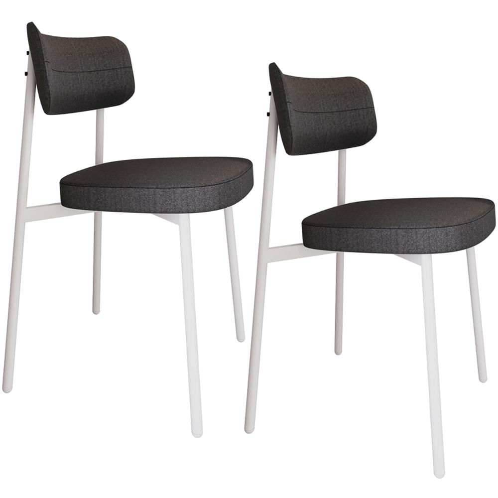 Kit 02 Cadeiras Estofada Para Sala de Jantar Astrid Branco C01 Linho Preto - Lyam Decor
