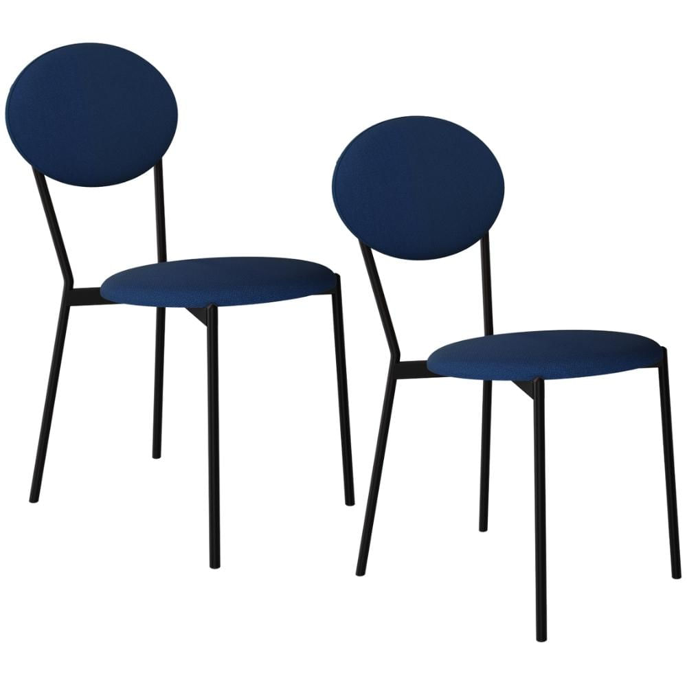 Kit 02 Cadeiras Estofada Para Sala de Jantar Azuri Preto C01 Linho Azul - Lyam Decor