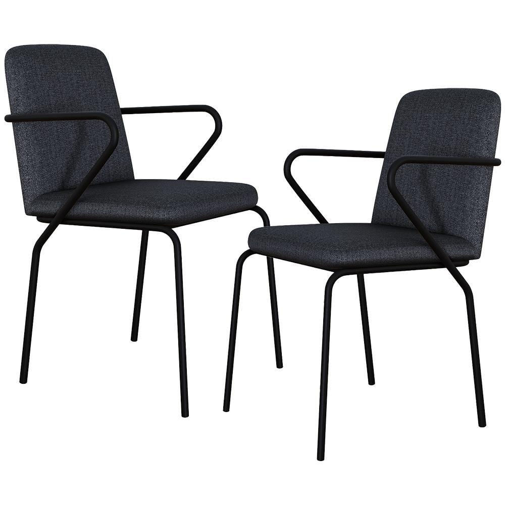 Kit 02 Cadeiras Estofada Para Sala De Jantar Com Braço Loft Preto C01 Linho Grafite - Lyam Decor