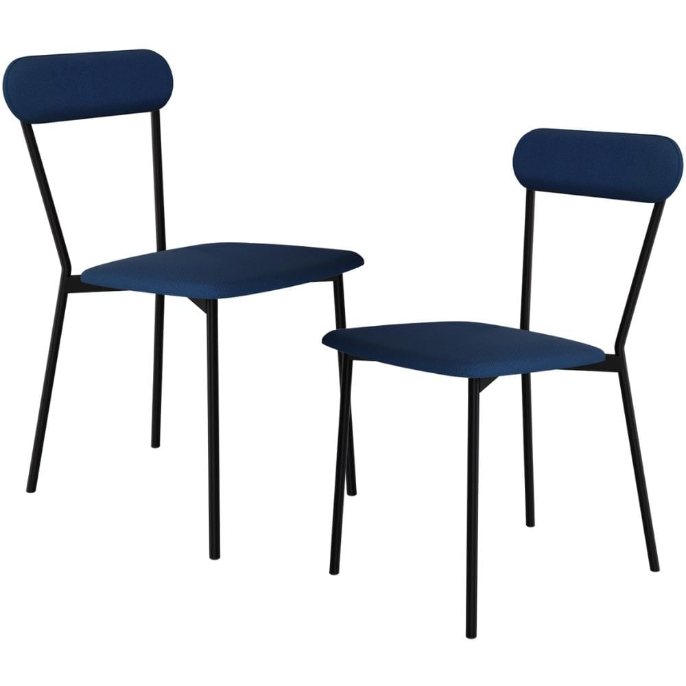 Kit 02 Cadeiras Estofada Para Sala de Jantar Liora Preto C01 Linho Azul - Lyam Decor