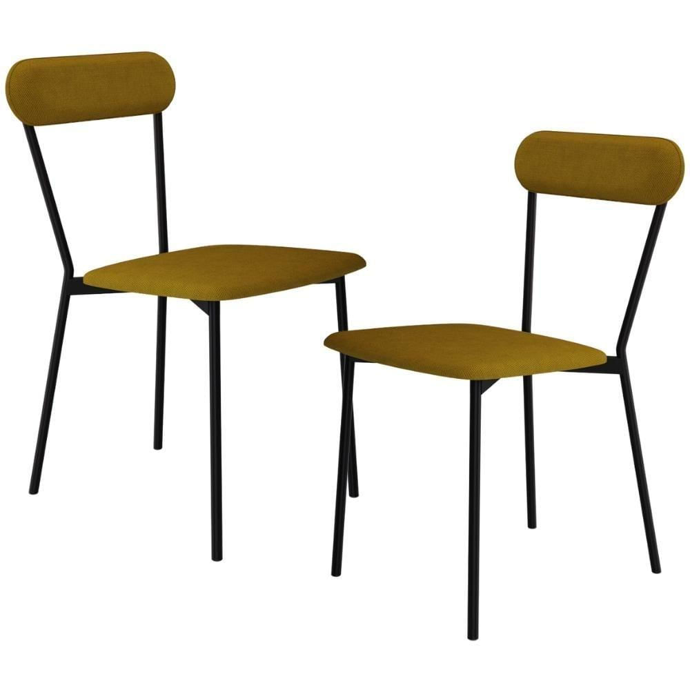 Kit 02 Cadeiras Estofada Para Sala De Jantar Liora Preto C01 Linho Mostarda - Lyam Decor