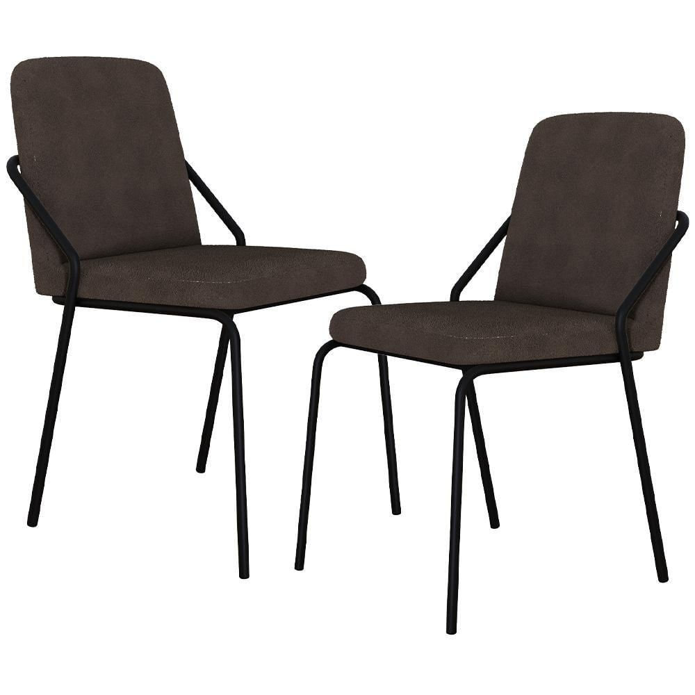 Kit 02 Cadeiras Estofada Para Sala De Jantar Loft Preto C01 Bouclê Marrom - Lyam Decor