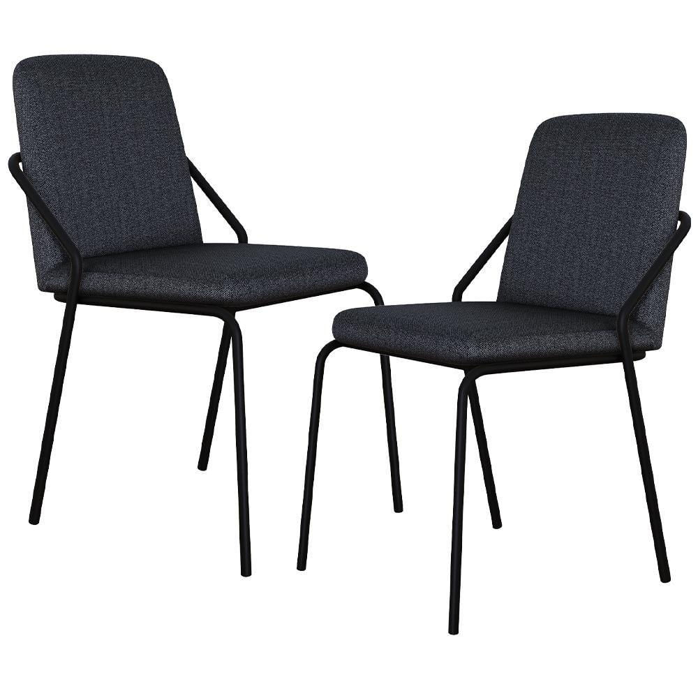 Kit 02 Cadeiras Estofada Para Sala De Jantar Loft Preto C01 Linho Grafite - Lyam Decor