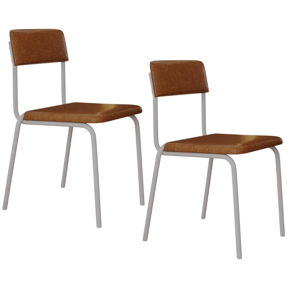 Kit 02 Cadeiras Estofada Para Sala de Jantar Sense Branco C01 Courino Caramelo - Lyam Decor