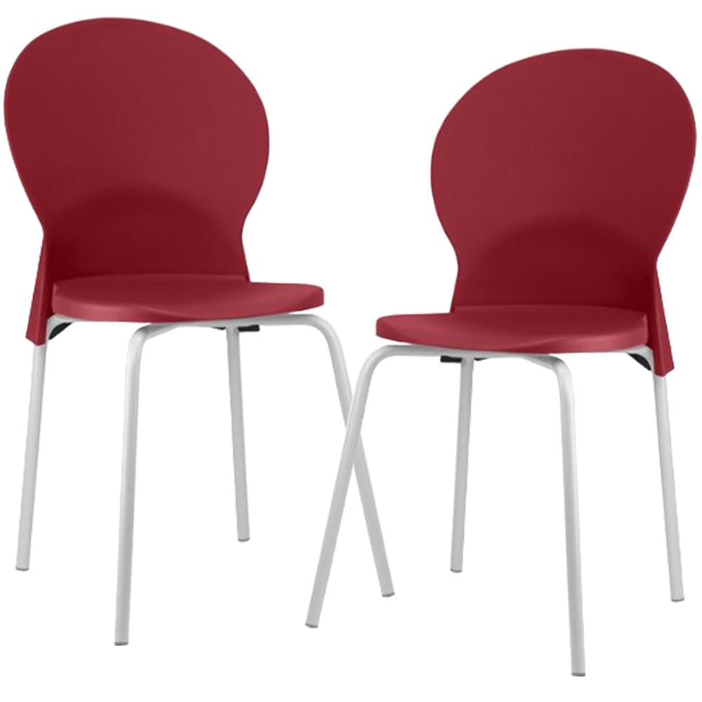 Material do encosto e assento injetado em Polipropileno (PP) 100% reciclável, na tonalidade Vermelho.
